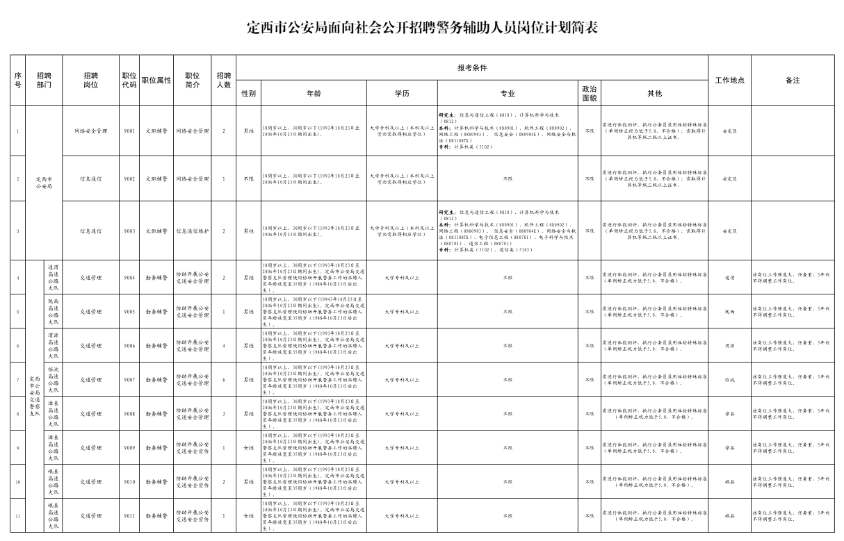 定西市公安局公开招聘警务辅助人员公告 |